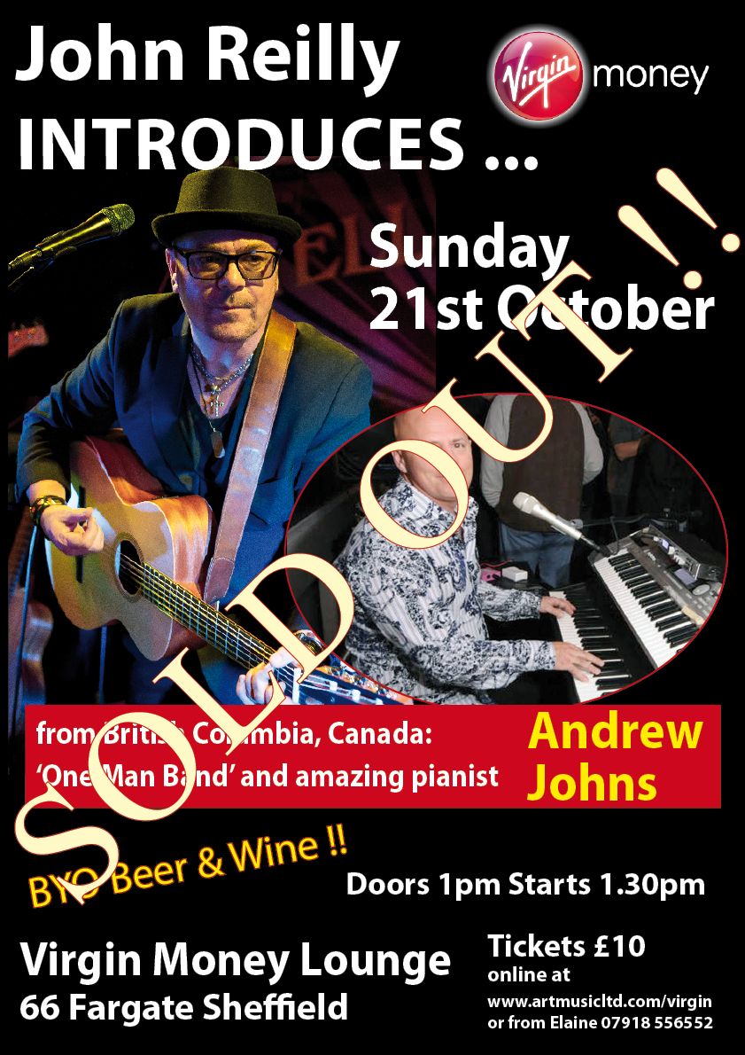 Expect to hear original John Reilly and Boy on a Dolphin tunes, classics from Jack T Harper’s brand new EP and who knows what else!! All that is certain is that it will be another amazing Sunday session at Virgin Money Lounge, Sheffield so don’t miss it !!